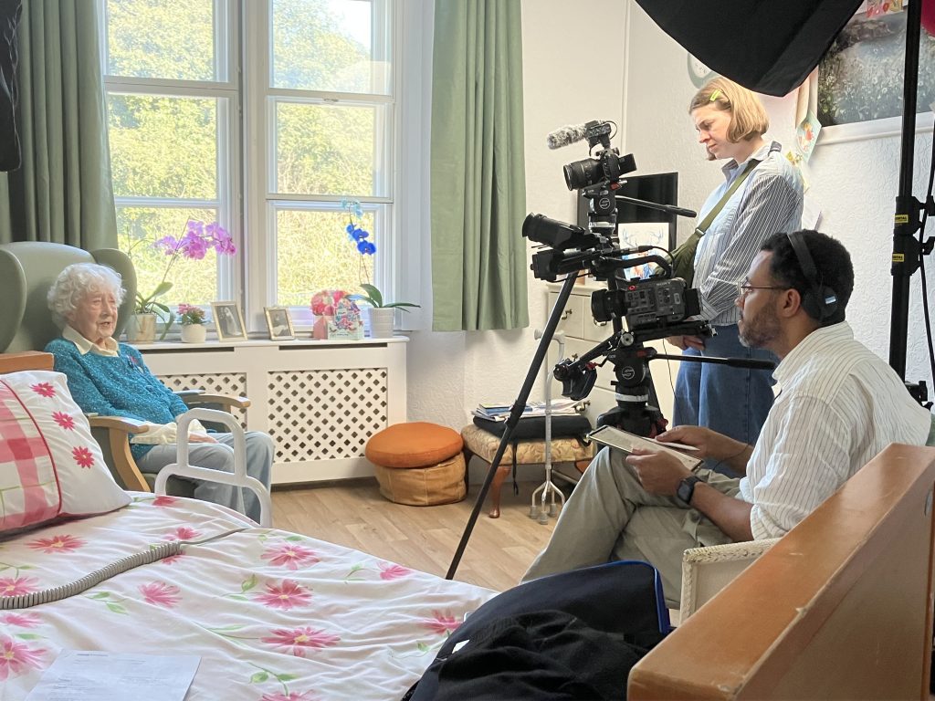 Mary Overill with John Townsend from Hear and Now and below a photo of when Mary was interviewed by the BBC.